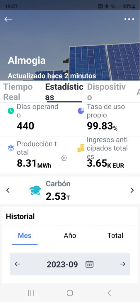 En 440 días una de nuestras smartvillas, ha producido 8.31 MWh, evitando 2,53 toneladas de carbón o 445 árboles.
